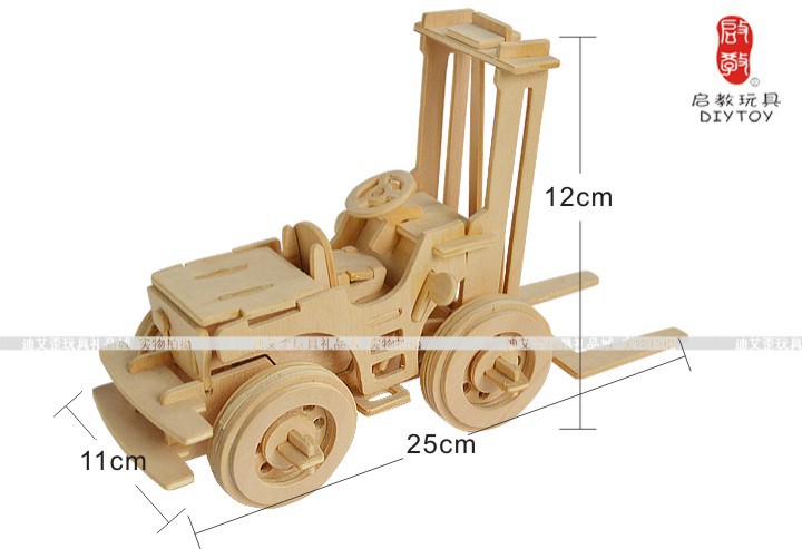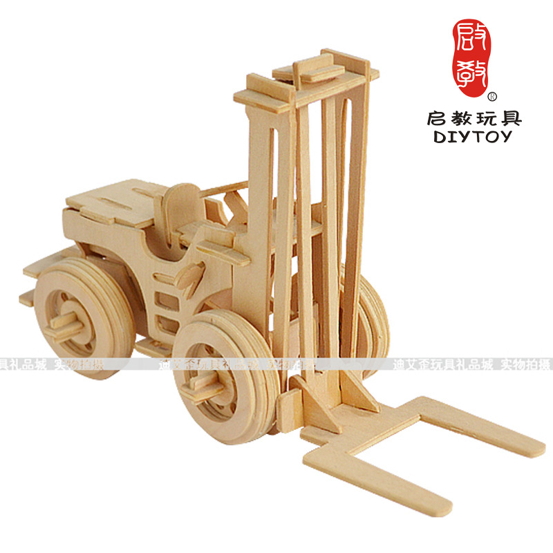 玩具厂家直销工程车模 广告促销 DIY木制玩具 立体拼图 - 叉车
