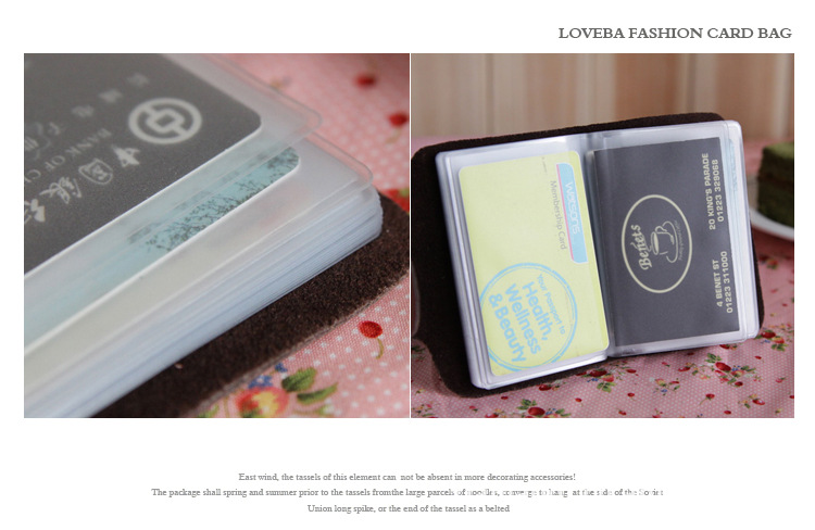 【规格】:高11CM 宽7.5M 【材质】:PU皮革制品+高档五金扣+PVC内页 【包装】:OPP袋子 【功能】:卡包 名片夹 银行卡包 【须知】:旋转式卡包可以选择配螺丝或是撞钉,卡包可以做10-26卡位,名片包可以做60-102卡位,按客户要求定做 本产品颜色款式多样,可以按客户的颜色来下订单100个起订,一件600个 |