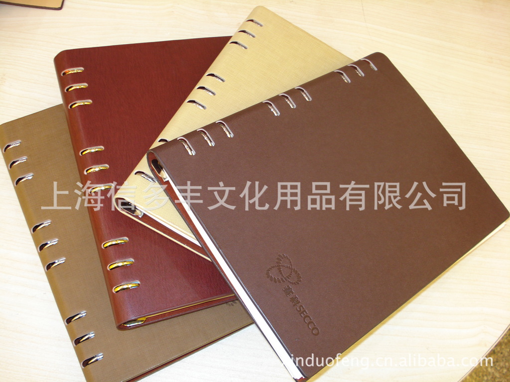 上海信多丰文化用品有限公司是国内最具规模的礼品型皮具本册生产企业之一,在上海市设有皮具文具厂和印刷装订厂,拥有整套皮具制造及簿册印刷装订全方位流水作业生产线,工厂面积10000平方米,年产各类礼品型皮具本册100多万本。经营项目:平装记事本 裱装记事本 油边记事本 牛津布记事本 A6 A5 A4 头层真皮记事本 文件夹 无碳复写、出入库单、财务表格、笔记本、通讯手册、请柬台历:台历 活页记事本 外露孔夹记事簿 万用手册 效率手册 圈装记事本 真皮活页记事本 培训手册 工作手册 特规记事本丝绸记事本 青花瓷记事本 会议记录本 周历记事本 年历记事本 彩色记事簿 艺术纸记事本 再生皮记事本 活页记事本内芯 平装记事本内芯 专版记事本企业LOGO内芯 CD套、展示盒 贵宾卡 刮刮卡礼盒 包装盒