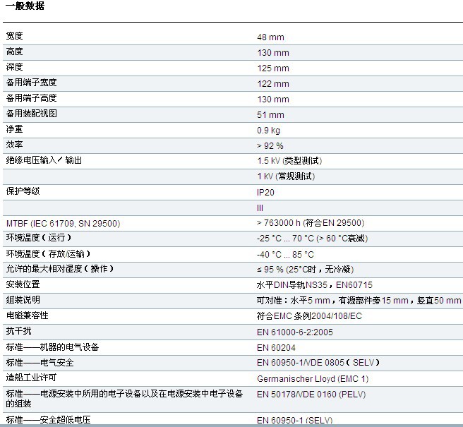 48V DC/10A DIN导轨安装式电源,初级开关模式,单相。 SFB技术(选择性熔断技术)现在还可以快速、可靠地触发标准电源断路器。
