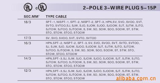 3芯美式电源线插头,UL认证电源线