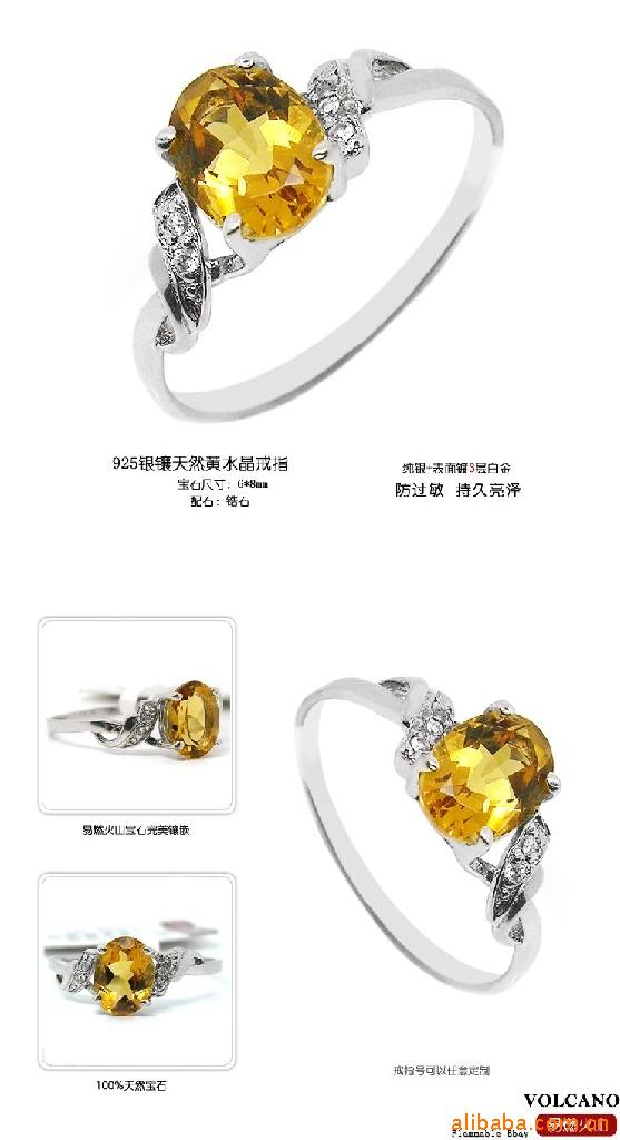 易燃火山925银镀白金天然黄水晶戒指SR0160C
