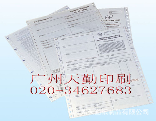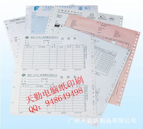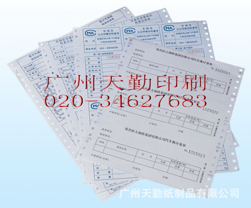 电脑连续报表印刷|设备交接单印刷|印刷两边带孔机打联单印刷广州天勤电脑纸印刷有限公司 是一家集无碳纸电脑表格联单印刷及多联无碳纸表格印刷、设计、后工序加工为一体的优秀印刷企业。公司拥有日本宫腰(MIYAKOSHI)高速轮转商业表格印刷机、美国爱克发配页机、追印机、卷筒分切机、小卷纸(收银纸)分切机、东航双色多色表格胶印机、东晋单色表格印刷机、切纸机、打孔机以及配备齐全的印前、印后设施,公司拥有工厂面积2000多平方米,4条生产线,更集中了一班高素质的印刷专业人员。连贯的服务使您倍感系统与整体的优势;先进的管理及运作方式使您时刻体会到时间与效率的价值。对产品质量精益求精、视质量为企业的生命一直是我们的经营理念。