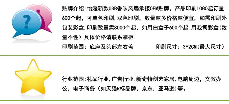 2014新款USB香味风扇荣重上市,该风扇款式新颖独特,颜色靓丽,采用涡轮无叶技术,使风力更强劲,更自然,而且可以加冰,加水,加香味。本品可贴加工,适用于礼品行业,电脑周边,车内饰品,桌面摆设,文化用品方面,送亲人,送朋友,清凉一夏,倍有面子。