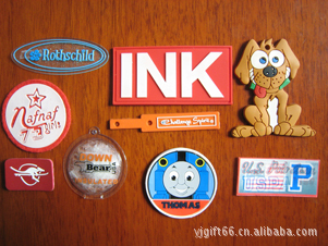 商标胶章:软胶PVC与硅胶材质。有卡通人物、卡通动物、汔车、衣服、球类,水果等图案。外形美观,明尚环保。主要适用于鞋子,衣服,手袋厂,可作为商务馈赠、广告礼品,促销品等。