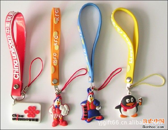 手机绳:PVC软胶,LOGO+吊绳。该手机吊绳,不怕水,不怕脏,简单的清洗即可恢复如新,产品款式新颖,采用全手工滴胶。吊绳表面可做平面或3D效果,并可加印logo,无形中给客户灌输品牌意识。