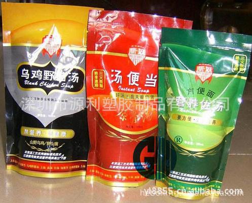 复合食品袋的材质组合及其特性、用途:1. 材质:BOPP/LLDPE两层复合,特性:防潮、耐寒、低温热封拉力强,用途:速食面、零食、冷冻点心、粉状包装等。2. 材质:BOPP/CPP两层复合,特性:防潮、耐油、透明度高、挺性好,用途:速食面、饼干、糖果、各类轻便食品。3. 材质:BOPP/VMCPP两层复合,特性:防潮、耐油、隔氧、遮光、挺性好,用途:各类干燥食品、油炸食品、薯片。4. 材质:BOPP/VMPET/LLDPE三层复合,特性:防潮、隔氧、遮光,用途:各类食品、米制小吃、零食、茶叶。5. 材质:PET/PET/LLBPE三层复合,特性:防潮、耐高温、易封性,用途:粉类包装、酱油、液体、洗发液,适用于食品、电子产品、化工、医药、茶叶产品包装。