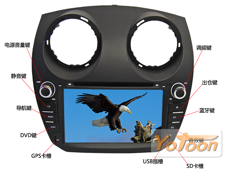 ·友通Yotoon车载影音导航系列产品内置2路视频输出,2路视频输入(一路为视频输入,一路为后视摄像头信号输入)接口。 |