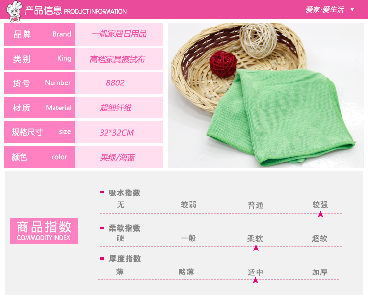 品牌: 一帆 品名:家具擦拭布 货号:8802