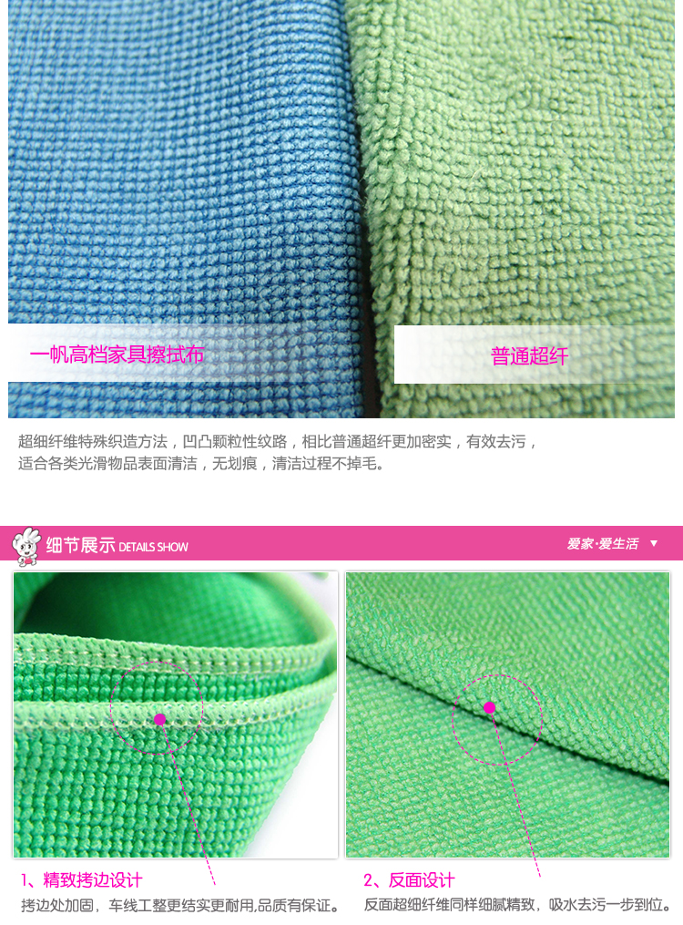 特点:采用超细纤维,吸水性强,去污力好,不脱毛