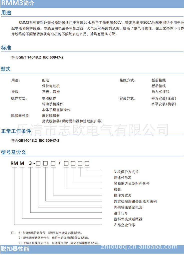 上海人民电器厂RMM3塑料外壳式断路器 产品描述: