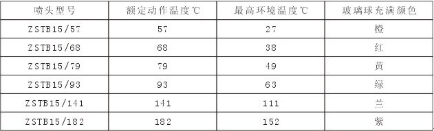 喷头额定温度及色标: