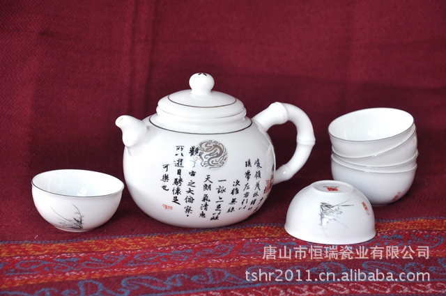 【品名】 竹节型薄胎茶具套装 兰亭序