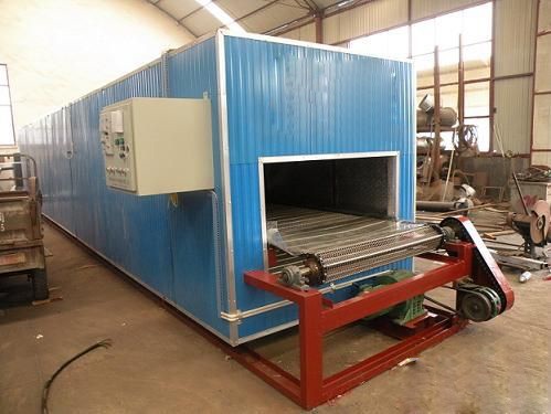 网带式烘干机是利用钢网作为传输带运载物料进行连续烘干的干燥设备,最适宜流水作业。由于传输带是网状,所以对烘干规则或不规则各种块状物(如:煤块、各种矿粉成型快、食品、蔬菜等)最为适宜。本机可以喝其他设备配套使用。也可以单独使用。
