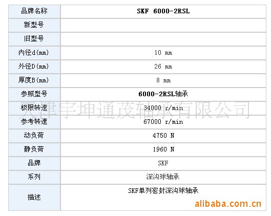 SKF深沟球轴承6000-2RSL尺寸参数: