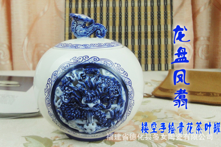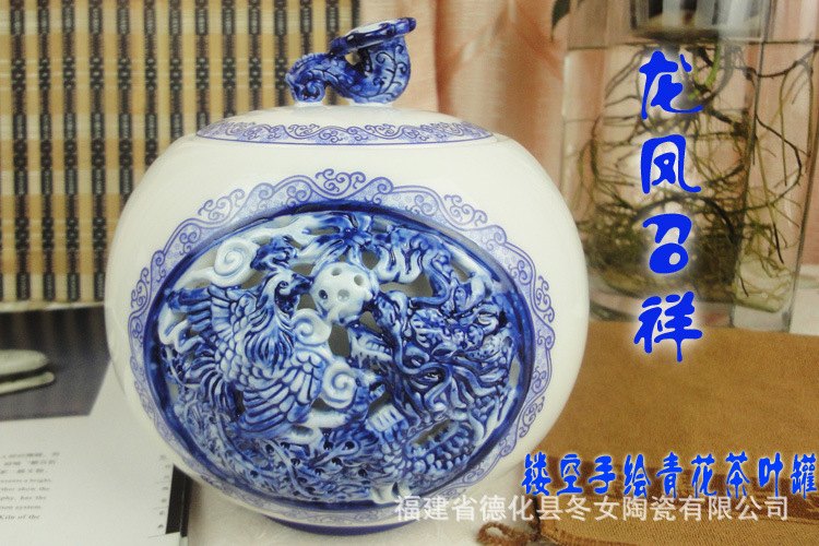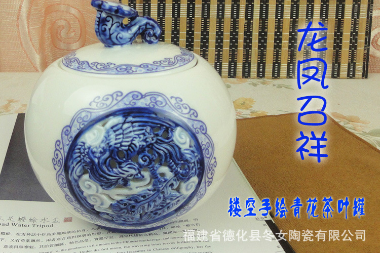 品名:龙凤呈祥镂空浮雕茶叶罐 货号:DNTCCC42