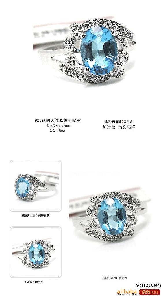 易燃火山925银镀白金天然蓝黄玉戒指SR0195B