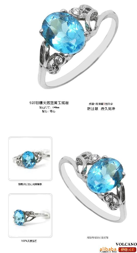 易燃火山925银镀白金天然蓝黄玉戒指SR0284B