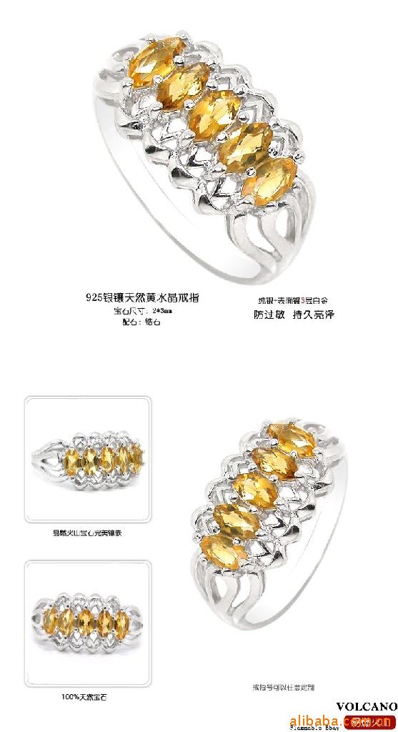名称:易燃火山925银镀白金天然黄水晶戒指