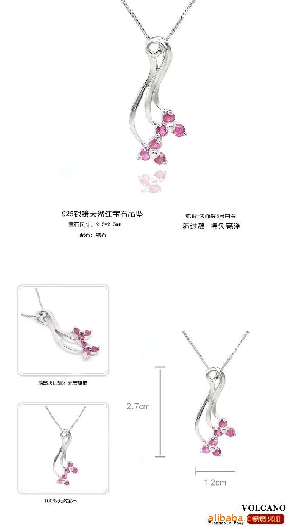 名称:925银镀白金天然红宝石吊坠SP0212R