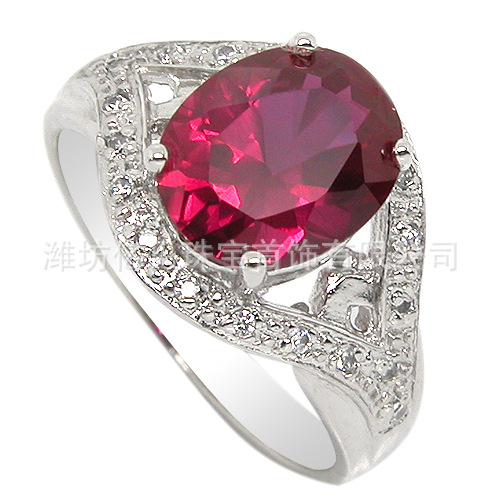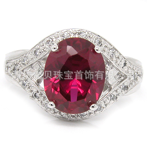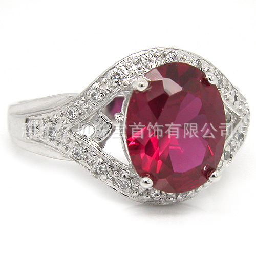 详细说明:铜镀白金,镶嵌优质红刚玉。