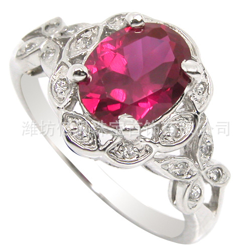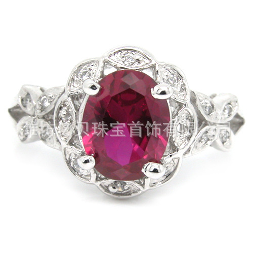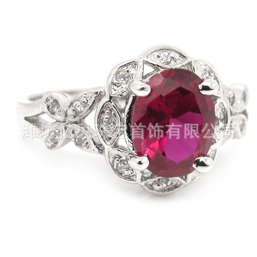 详细说明:铜镀白金,镶嵌优质红刚玉。