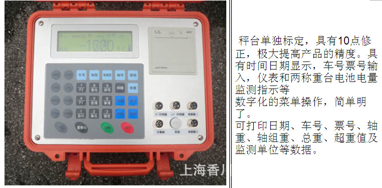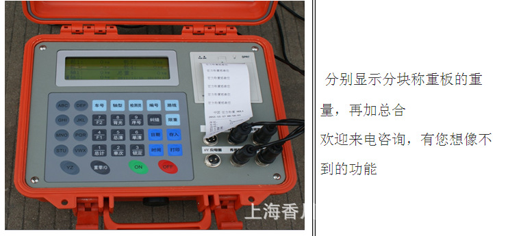 南汇汽车衡,100吨便携式地磅,工地称重地磅秤 一、简述:SCS-XC-D型便携式静动态电子轴重秤, 便携式轴重仪优点在于台面薄,重量轻,便于携带,有衡器中的笔记本之称。称重台面采用多个密封传感器镶嵌到高强度铝合金称重台底部的结构形式,称量精度高,密封效果优良。广泛应用于公路运输负荷控制,高速公路执法检查,汽车安全性能检测,市政废物垃圾处理等方面,轴重仪的开发利用为为路政,市政,安检等部门带来很大方便。※称重量程:⑴轮重:0~15t (2)轴重:0~30t (3)整车重:0~1000t ※静态精度:±0.5% FS;动态精度:±3% FS※产品重量:(1)秤重台: 27Kg(单个)※推荐行车速度:3-5公里/小时※秤重台面尺寸:700mm×430mm×30mm。※仪表尺寸:430×335×170mm※台板重量:18kg/块;引坡重量: 8kg/块。※内置高容量蓄电池,充电一次,可检测数百次,可用汽车点烟器供电。 南汇汽车衡,100吨便携式地磅,工地称重地磅秤 二、组成部件 标准配置: 两块高强度铝合金称重台,简洁轻便,坚固耐用;四块橡胶限速引坡; 香川XK3101系列智能化交直流两用,便携式仪表,交直流两用,显示打印一体化,方便快捷; 防护性能达到IP 67等级要求; 超薄型钢制传感器,结构紧凑,抗偏载,过载能力强。 三、功能特点: ※秤台单独标定,具有10点修正,极大提高产品的精度。具有时间日期显示,车号票号输入,仪表和两称重台电池电量监测指示等 ※数字化的菜单操作,简单明了。 ※可打印日期、车号、票号、轴重、轴组重、总重、超重值及监测单位等数据。 ※采用标准RS-232接口,方便与计算机联接。 ※自动判别车轴及轮胎类型 ※自动判别是否超限。 ※自动打印完备的检测凭单。 ※可随时向上位机传送检测数据 ※自动速度补偿。 ※全汉字点阵显示车辆信息。 ※可储存1000辆的检测纪录。 ※完备的检索及统计功能。 ※路政和交警两种工作模式。 |