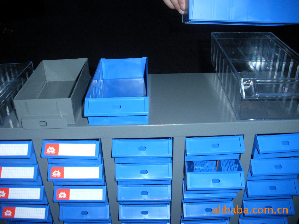 2、塑料零件盒可以单独使用,并可以与轻型货架、置物柜等工位器具配合使用,有效节省空间,降低成本。