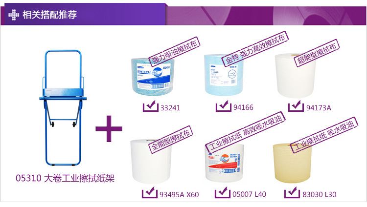 适合搭配使用型号一览表。不限于金佰利的擦拭产品 其他品牌大卷擦拭纸 (布)也可以搭配使用。