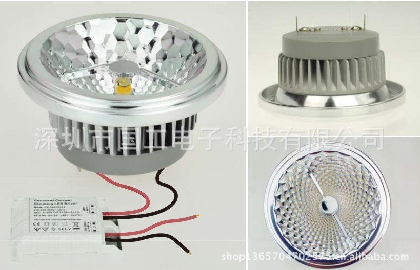 产品名称:AR111(LEDAR111拥有重点照明的特性,适合各类场合,可直接替换传统卤素灯光源。)