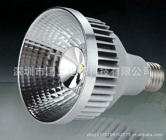 【商品名称】COBPAR30射灯 【商品型号】par30 12W 15W【商品规格】:灯体直径96mm,高101mm, 【发光颜色】红 绿 蓝 黄 白 暖白 【色 温】正白色温:4000K 暖白:3000K 2700K【工作电压】AC 85-260V 采用高效恒流电源【额定功率】 15 W 12w【灯珠颗数】 1 PCS (正品高亮CREE大功率LED灯珠) 【整灯光通量】700LM,采用专业设计的二次光学透镜,具有良好的光效和透光性。 【安全保证】产品符合中国强制性CCC认证标准 ,具有过压保护,欠压保护,短路保护,过热保护功能 【外壳颜色】黑色,白色,银色(请选择) 【表面温度】使用优质铝材,优秀外形的工业设计,使得整灯温度最高只有53度(环境温度25度) 【灯珠参数】采用西铁城正品高亮度大功率LED灯珠,寿命4万小时以上,光衰率:≤3‰/KH 【适用范围】特别适用于服装店、商场、家庭、娱乐场所、展览厅 【使用寿命】40000H 【服务承诺】2年免费保修 1.发光效率高;保持建筑装饰的整体统一与完美,不破坏灯具的设置,光源隐藏建筑装饰内部,光源不外露,无眩光,人的视觉效果柔和、均匀白炽灯、卤钨灯光效为12-24流明/瓦;荧光灯50~70流明/瓦;钠灯90~140流明/瓦,大部分的耗电变成热量损耗;LED光效经改良后将达到达120~200流明/瓦,而且其光的单色性好、光谱窄,无需过滤可直接发有色可见光2.耗电量少LED的节能效果众所周知。3.使用寿命长采用电子光场辐射发光,灯丝发光易烧、热沉积、光衰减等缺点。而采用LED天花灯、筒灯体积小、重量轻,环氧树脂封装,可承受高强度机械冲击和震动,不易破碎。单颗LED 平均寿命达10万小时。LED天花灯、筒灯正常使用一般寿命可达5-10年左右,可以大大降低灯具的维护费用,避免经常换灯之苦。4.安全可靠性强用途:适用于商场、精品店、家私城、服装店、展厅、画廊等各种高级商业照明场合。 (4)光色均匀,色彩亮丽逼真; (5)尽量避免使纺织物失去光泽、塑料脆化(防紫外线); (6)在整个有效使用寿命内光色恒定;