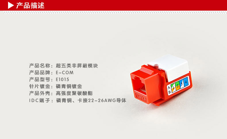 E-COM开关插座 电脑插座模块 小位网线模块 RJ45超五类非屏蔽模块