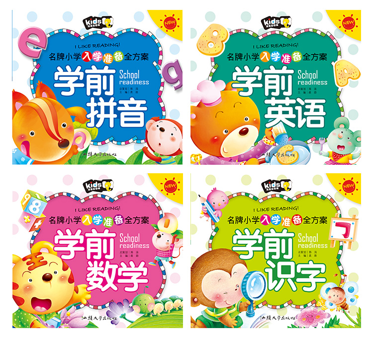 书名:小学入学准备全方案 学前读物 数学 识字 拼音 英语 全4册