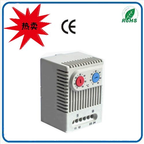 散热恒温调节器:可搭配风扇起到散热作用,和热交换器或适用于温度交界点传送信号控制作用。此产品主要用于机柜内,保护元器件和调节周围温度作用。