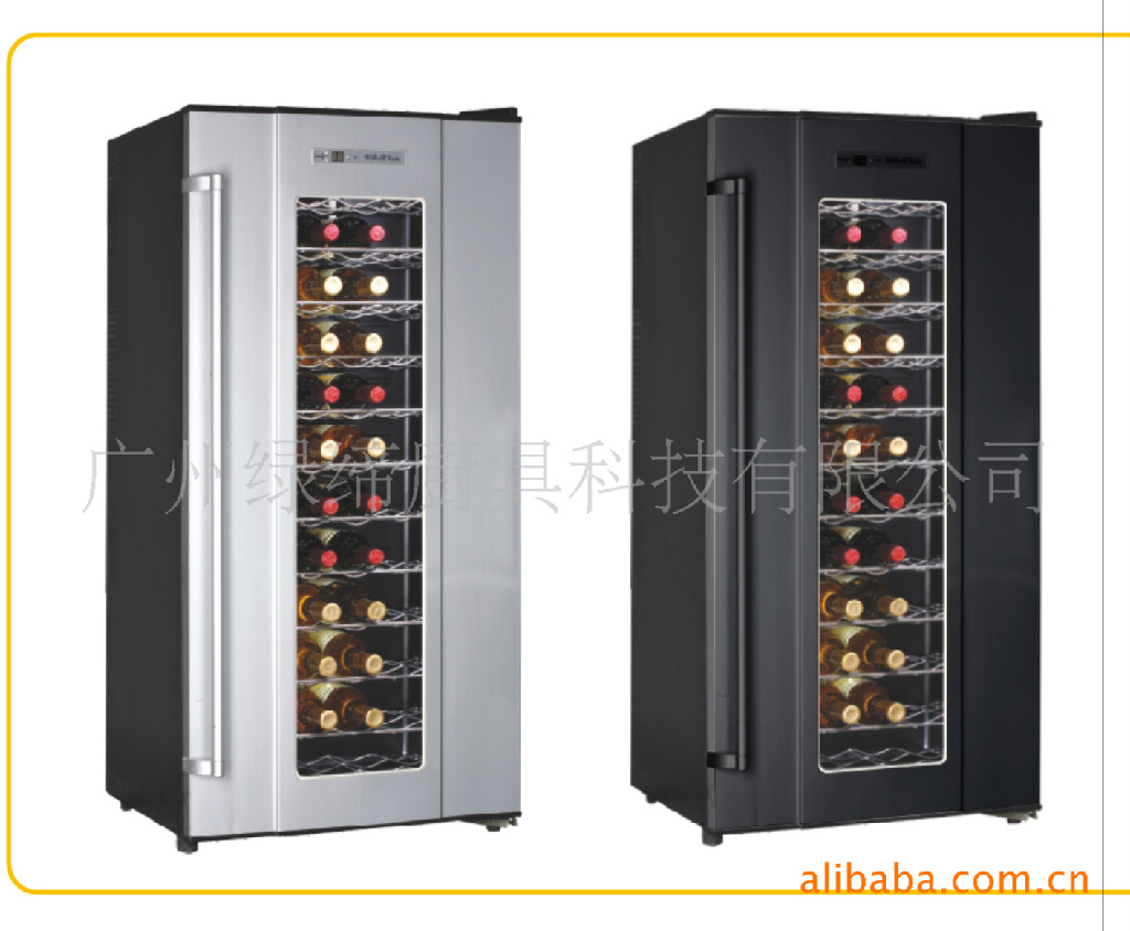 绿缔电子酒柜采用半导体制冷技术,工作中无振动、无噪音;外观设计精美、时尚、内部布局灵活多变;无噪音,寿命长,环保节能;适用于酒店、宾馆、个人爱好者等。 半导体酒柜是最接近于地窖储酒的一种高科技冷藏设备,葡萄酒在出厂后实际还处于再发酵过程中,如果把她储存在适当温度和无振动环境中,这种微生物再发酵过程就会进行得比较充分,使其口感更加醇香。半导体酒柜可以把箱内温度控制在红葡萄酒最佳的口感温度,范围12-18℃之间。绿缔电子酒柜采用半导体制冷技术,工作中无振动、无噪音;外观设计精美、时尚、内部布局灵活多变;无噪音,寿命长,环保节能;适用于酒店、宾馆、家庭、学校、可嵌入壁柜、橱柜使用,绿缔酒柜,您储存红酒最佳的选择; 饮酒有先后次序:一般情况下,先普通酒后贵价高质酒,相反则酒质高低的差异会很明显;先干型酒后甜酒,因为甜型酒会使干型酒尝起来味道较酸;先清淡型酒后醇香型酒,因为醇厚型酒和加强型酒的酒味会盖过清淡型酒;先新酒后陈年型酒; 葡萄酒酒的最佳饮用温度 气泡酒:5-10℃ 轻型甜白葡萄酒:5-10℃ 轻型干白葡萄酒:10-12℃ 中等强度干白葡萄酒:10-12℃ 强劲甜白葡萄酒:10-12℃ 强劲干白葡萄酒:10-16℃ 轻型红葡萄酒:12-16℃ 中等强度红葡萄酒:14-17℃ 半导体酒柜的特点 1、无振动 无压缩机运行以确保无振动,更方便保管保存红酒。 2、无噪音 无压缩机运行以确保一个安静的环境(只有30分贝) 3、湿度稳定 酒柜内部的湿度保持在50-60%,以便更有利于葡萄酒的储存; 4、无污染 无压缩机运行以确保无氟氯化碳,避免污染; 半导体制冷原理: 半导体制冷,是帕尔贴效应,是一种由具有固态能量转移的应用半导体材料而实现。 Principles The thermoelectric cooling,called Peltier Effect,Is a solid-state method of heating transfer through dissimilar(P shape& N shape)semiconductor materials; 这个完整的系统包括一个半导体模块(P&N半导体连接着两个陶瓷芯片),一个内部和外部热转换器。 为了获得更高的能源效应,安装了一个低转速无噪音的热交换器。 The complete system includes a semi-conductor module(P&N shape semi-conductors clamped with two ceramic chips),low-speed-and-noise fans are fitted with heat exchangers. 在操作过程中,直接通过半导体模块将热量由内(吸热结合点)向外(放热结合点)转移。 During operation,direct current goes through the semiconductor module which causes heat to be transferred from inside(the endothermic joint) to outside(the exothermic joint).The heat is removed from an insulated space which results in an idealcooling compartment