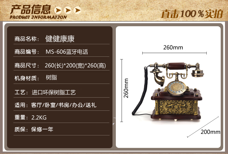 仿古蓝牙无线电话,不仅提供古典风范,更提倡一种追求的生活态度,一种追求优雅的生活理念。她传承贵族豪门的经典与优雅,将古典艺术与科技时尚融合,为您雕琢高品质生活。对您的身体带来很大的帮助。