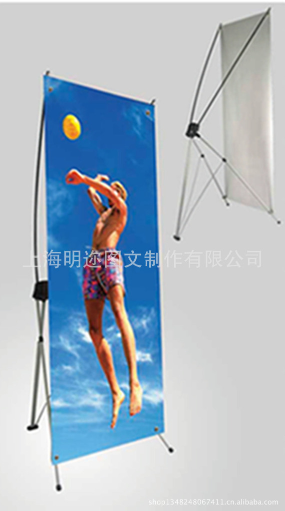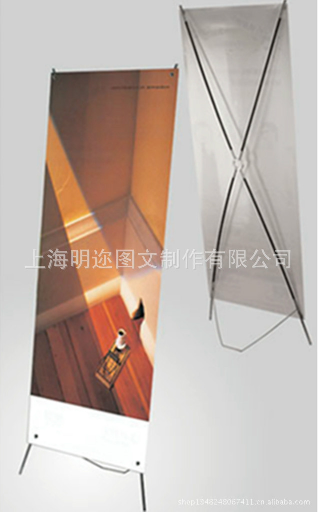 特点:X展架是用来支撑广告画面的一种形似英文字母X的架子,画面一般由PP合成纸,相纸、PVC写真画面,表面覆膜。应用于展览广告,巡回展示,商业促销,会议演示。X展架作为一种营销手段,是随着终端POP广告发展而来的。它具有绿色环保、方便运输、组装迅速等优点,摆放在销售场所中,能起到展示商品、传达信息、促进销售的作用。画面色彩艳丽,饱和,携带方便,易摆放。