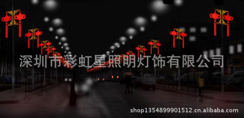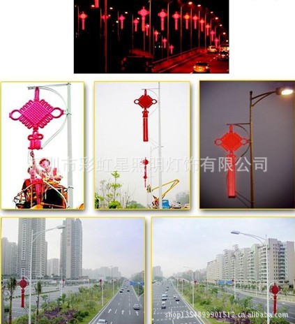 由挂式中国结灯、榴梳管组成的添灯产品,适用于贵宾光临、节日喜庆时刻,添加于城市主要干道的路灯灯杆上,既不需要增加路灯设施,又可以永久使用,可为整个城市增添最具中国特色的节日喜庆气氛,需要时该灯的流苏部分还可以作为广告载体,发布祝福语或广告信息。