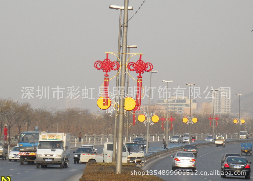 使用中国结灯添灯产品装饰道路是一个好办法,工期短安装方便,可具永久性。添灯就是采用箍圈方式安装反中国结灯直接添加在路灯灯杆上的专用产品。使用这产品装饰道路免去基础及灯杆等工程。在容量方面条件允许的情况下使用,具有省时省资金的优势,敬请各工程商关注。