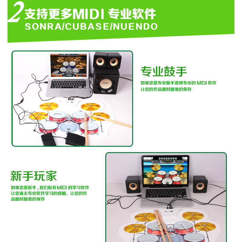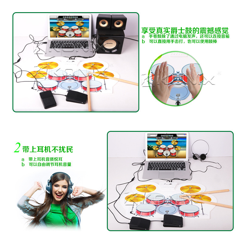 2014厂家直销USB 电子鼓 超手感炫硅胶电子鼓,模拟架子鼓