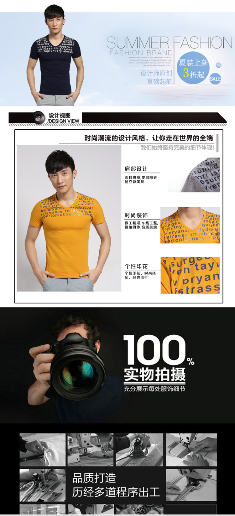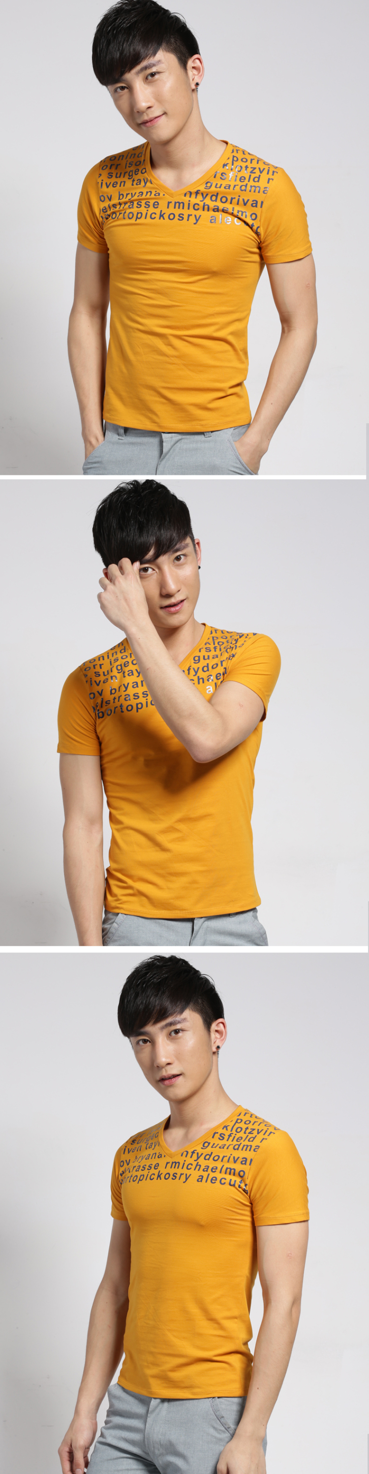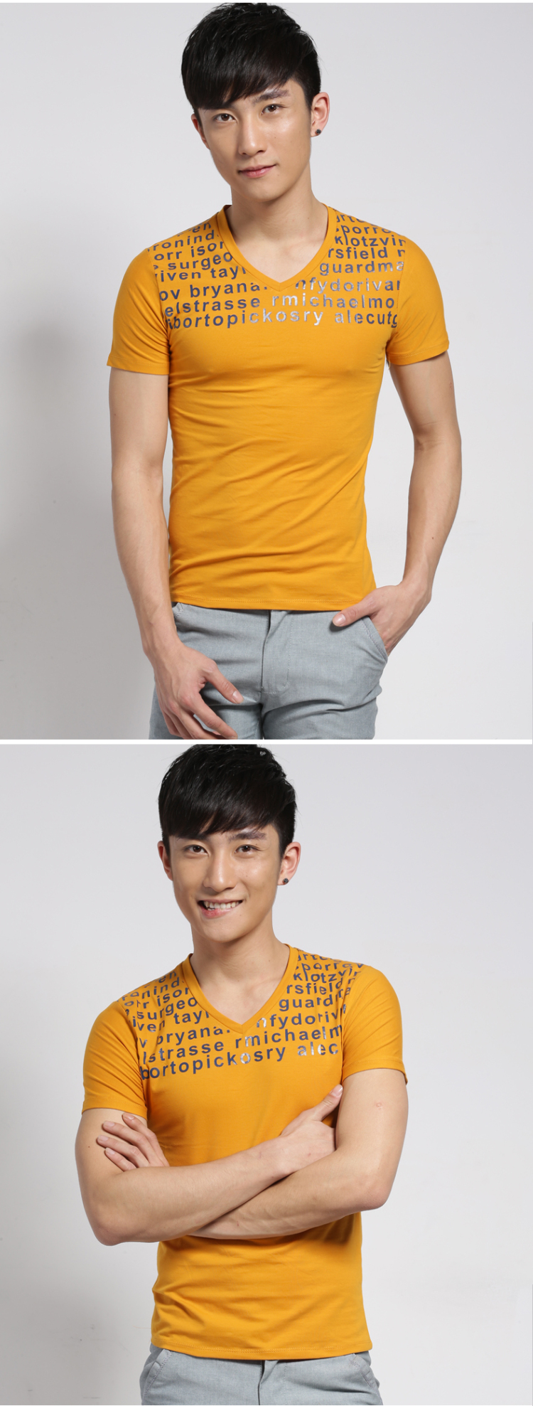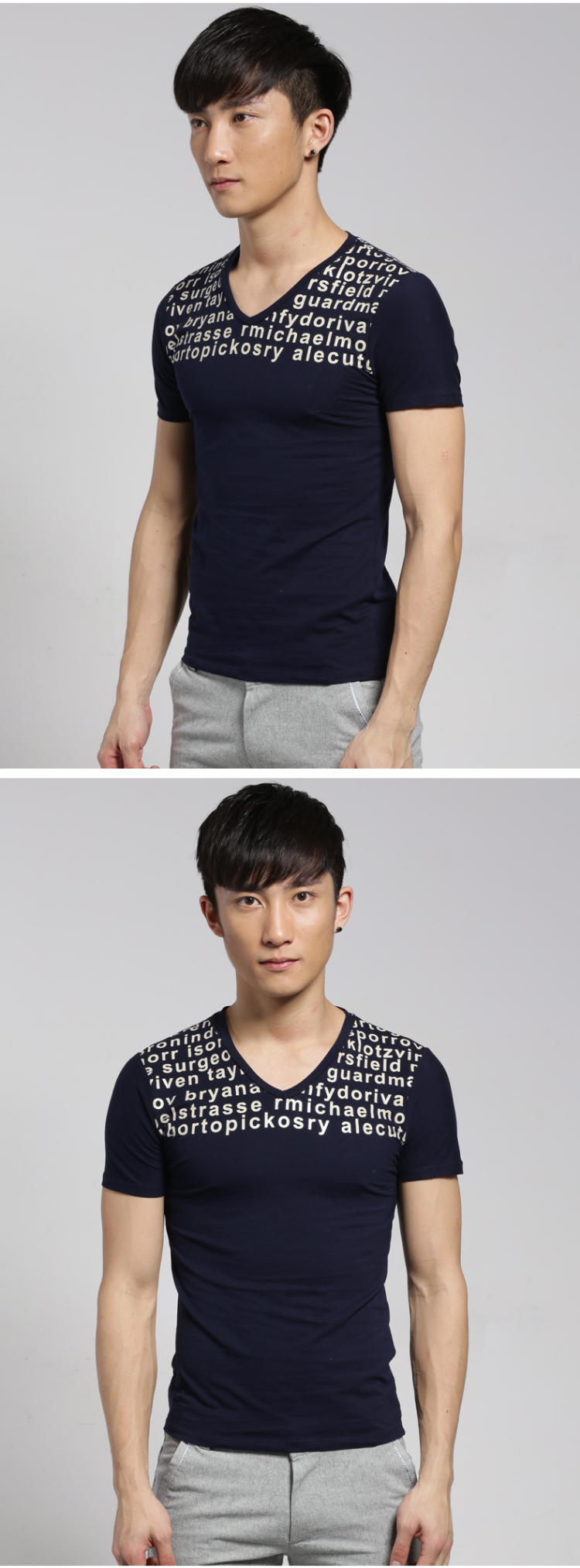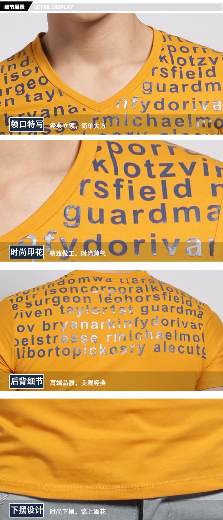 厂家清库特价男式t恤 v领高档面料 英文烫金纯棉休闲男装t恤批发