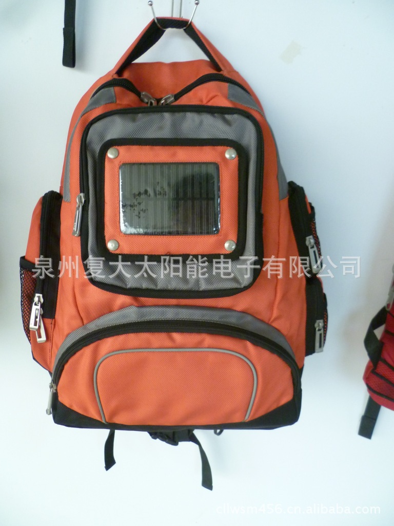 复大系列太阳能背包是通过太阳能电池板吸收太阳能并将太阳能转变为电能,贮存在内置的蓄电池内,根据不同的接口,给各种不同的手机或电子产品进行充电或供电,适合野外没有电时的应急使用。长期无阳光时,也可以将电池取出更换有电的电池(一次性干电池也可)来给手机补充电能,或采用专用的充电器,利用市电给蓄电盒充电。该产品操作简单,使用安全,携带方便,样式新颖,是居家,旅行的最佳充电产品。