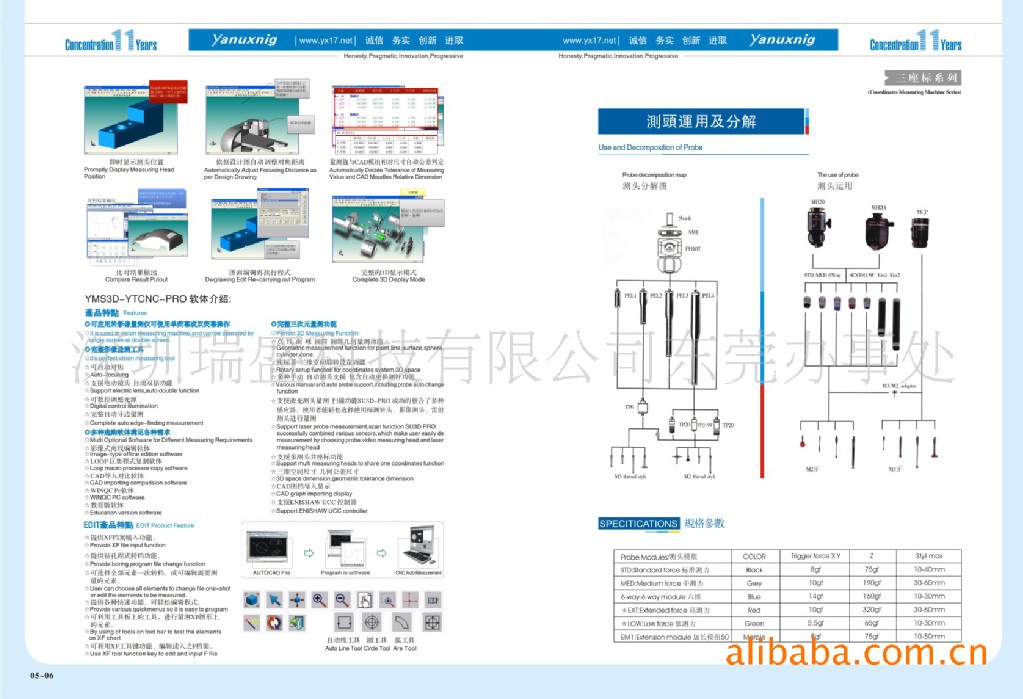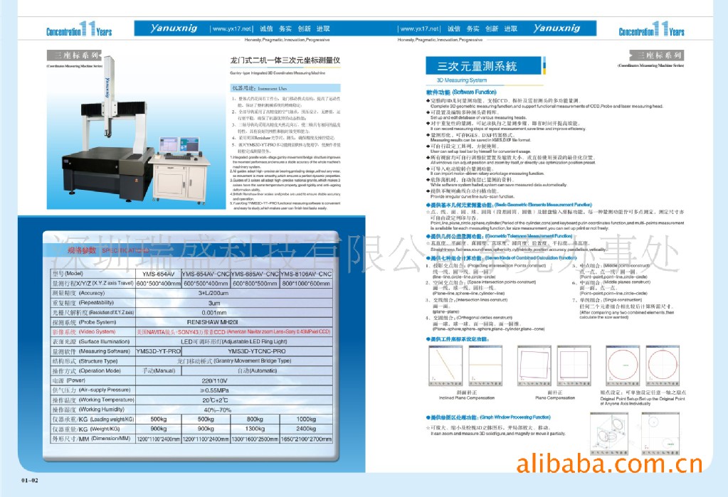 仪器用途:整体式的花岗石工作台,龙门移动桥式结构,提高了运动性能,保证了整机机械系统的稳定;全部导轨采用了高精度的空气轴承,预压设计,无磨损,运行更平稳,确保了机器优异的动态性能;三轴导轨均采用高精度天然花岗石,使三轴具有相同的温度特性,具有良好的刚性和搞时效变形能力;采用英国Renishaw光学尺、测头,确保精度及操控稳定;源兴YVMS3D-YT-PRO多功能测量软体方便易学,使操作者能轻松完成测量任务。
