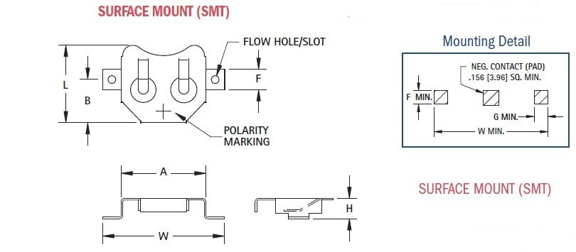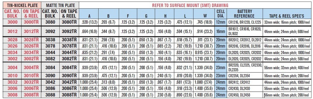 Battery retainers are suited for high density PCB packaging. Engineered with reliable spring tension,these contacts assure low resistance while firmly securing the battery within the retainer.