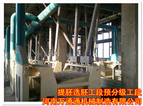 我司是一家十五年以玉米、杂粮专业的老牌生产厂家,是中国科学院河南省科委审批牌成立的河南省唯一一家《玉米、杂粮成套工程技术研究中心》的企业。企业所有产品都通了IS09001:2008国际质量体系认证,持有十几项家统一颁发的新型实用专利证书,拥有自营出口权,产品远销拉美、非洲、东南亚的名号40多个国家和地区。全干法提胚工艺特点一:工艺技术严谨、精益求精、技术工艺早年已优化定型。可一步到位,实现一次试车成功,坚信不会给业主造成一点经济损失。特点二:核心专用设备配置我公司独立研发并在工程中长期应用的专利设备。常规设备配备国内顶尖企业产品确保满足工艺设计要求及使用寿命。特点三、脱胚工段应用干法搓揉脱胚机原粮自上而下游动脱胚法机内无力。保证胚芽破碎率低。采用两道脱胚、等级选胚、三道串联选胚工艺达到胚芽纯度高、得率高。特点四:采用等级选仁的工序,使大、中、小、细糁(碴)的出率高,后经轻脱皮、轻抛光的工序使产品的表面皮及白淀粉降低,从而达到金黄色胶体突出,经精糁机剪切搓揉的工作原理确保等级糁的得率,同时提高等级玉米糁的表面形体(圆弧状),改变了食用者的口感。特点五:副料提纯工艺主要是从精脱皮、精抛光工序中流失到副产品中的微粒芯、轻微粒芯经分选、光辊轻轧、清粉、悬浮提取纯芯研麼制粉,以便提高正品得率,从而实现更高的经济效益。特点六:麼粉筛理工艺中配备多道清粉装备。研麼物料入麼前经清粉机分离出小杂、微皮、灰分等,保障等级粉的产品质量及经济指标。特点七:PLC电器自动化编程完全实现现代化工业连续生产。最大限度的提高生产效率降低生产成本。特点八:全程生产工艺中的各类副产品及杂质,原粮清理杂、去石杂、选胚皮质、脱皮皮杂、抛光皮质、悬浮皮杂、清粉细皮杂、细碎胚皮杂、脉冲分出的细皮、粉、杂质等。全部回收集中粉碎成细饲料粉达到不浪费一粒粮一片皮,提高经济效益。