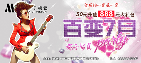 7:额外升级主题外景一套“百变七月,全城热恋”优惠专案:199元特惠体验价(只限美团团购)