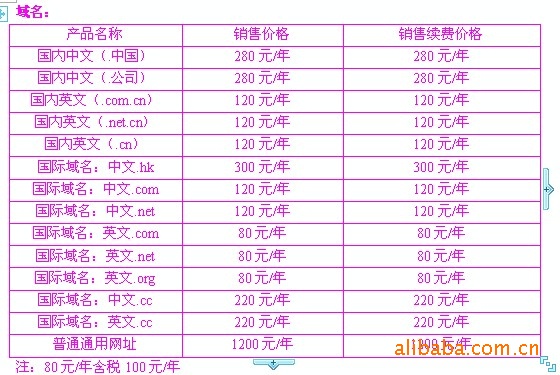 域名售价表: