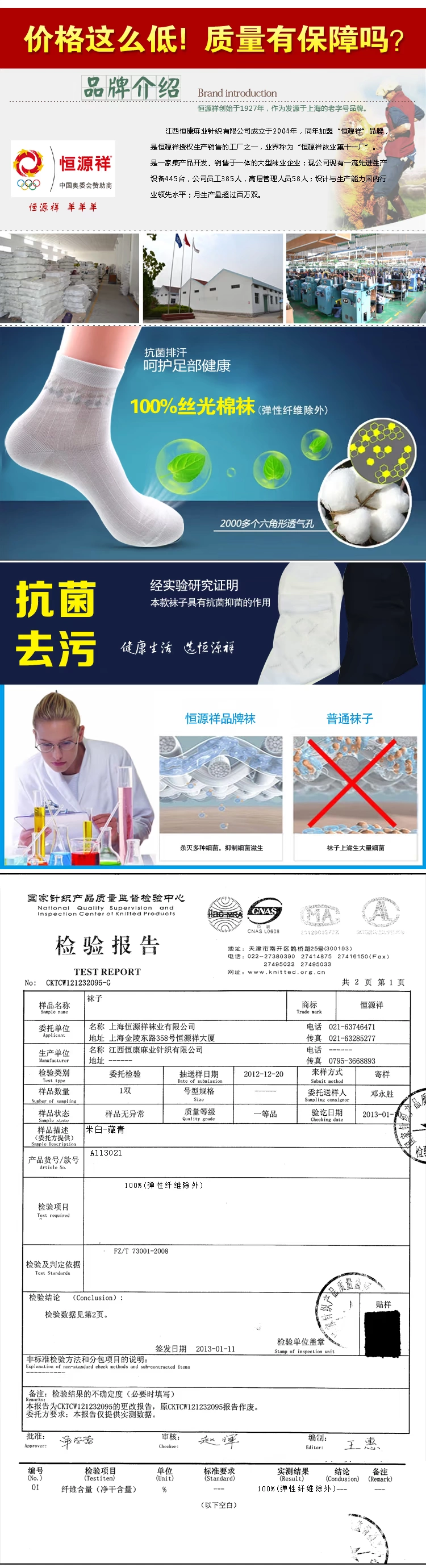 恒源祥正品 纯色袜批发 全棉袜清仓价特卖 小额针织内衣批发