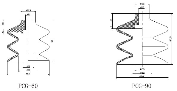 PCG风琴型三段式吸盘尺寸图:(尺寸图1-3)