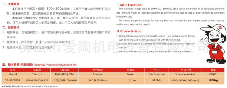 爱陶机电最新款 瓷砖叠砖机系列。专门解决陶瓷厂叠砖